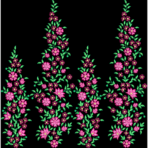 Vertical Floral Embroidered Spray Motifs with Pink Blossoms