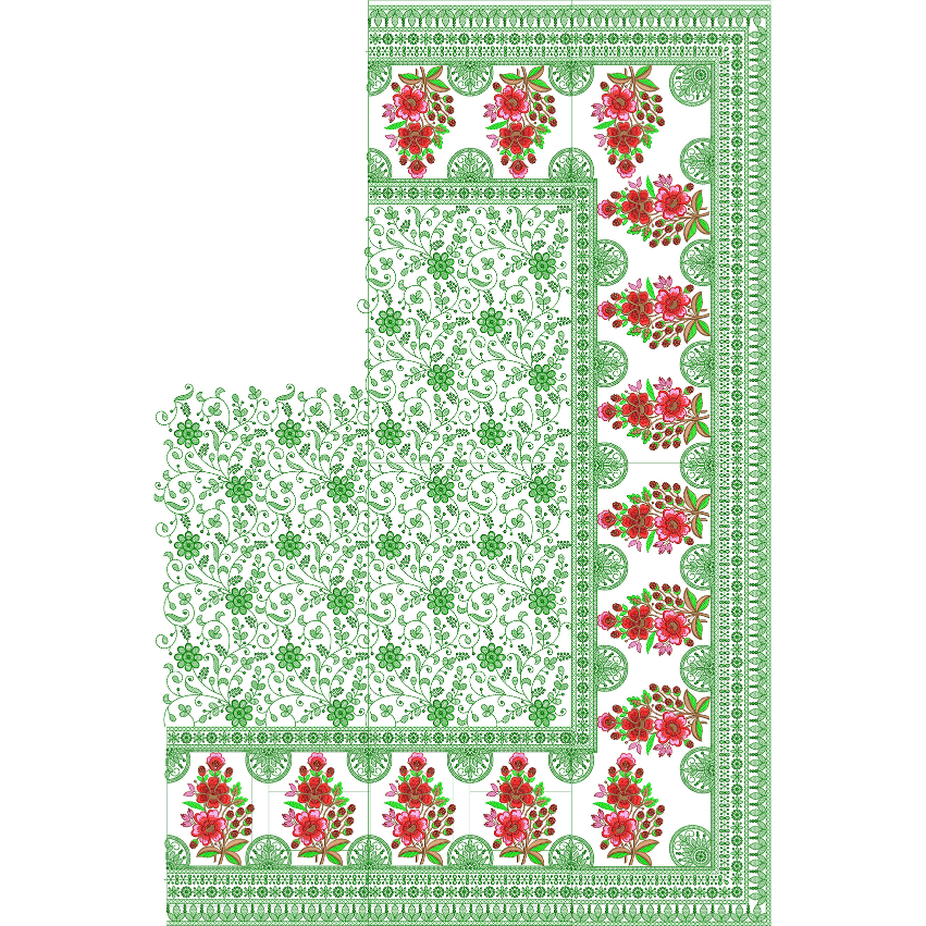 Vibrant Floral Bouquet Saree Embroidery Design with Intricate Vine Fill and Ornamental Border