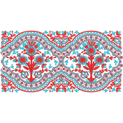 Vibrant Floral Lace Embroidery Border Design with Ornamental Frames and Symmetrical Motifs