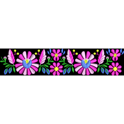 Vibrant Pink Floral Embroidery Border Textile Design