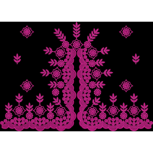 A bold ornamental floral border and vertical panel design in vibrant pink on a black background, ideal for statement textile prints and modern ethnic fashion garments.