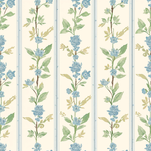 blue floral stripe pattern, vintage botanical stripe design, delicate blue flower repeat, floral branch stripe pattern, elegant floral textile print, pastel botanical stripe fabric, classic floral stripe seamless design, botanical flower stripe repeat, vintage floral fabric pattern, blue blossom stripe pattern