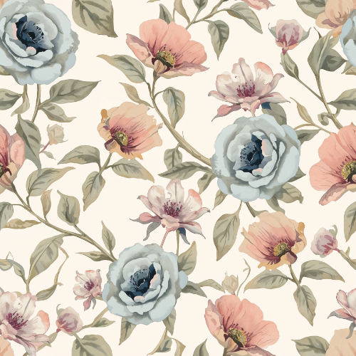 blue rose floral seamless pattern, vintage botanical flower design, peach rose repeat pattern, watercolor floral textile print, romantic garden flower pattern, cottage floral wallpaper design, botanical fabric seamless pattern, elegant rose surface pattern, vintage floral textile design, classic rose repeat pattern