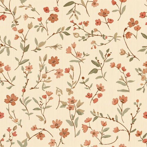With its warm floral tones and graceful botanical branches, this pattern beautifully captures the timeless charm of wildflowers blooming naturally in a vintage botanical style.