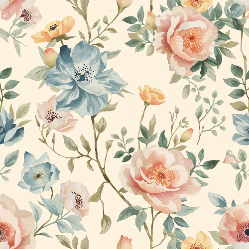 peach blue floral pattern, vintage botanical flower repeat, watercolor floral seamless design, romantic garden blossom pattern, cottage floral textile print, pastel botanical surface design, decorative floral garden repeat, vintage floral seamless pattern, botanical flower print design, elegant floral repeat pattern