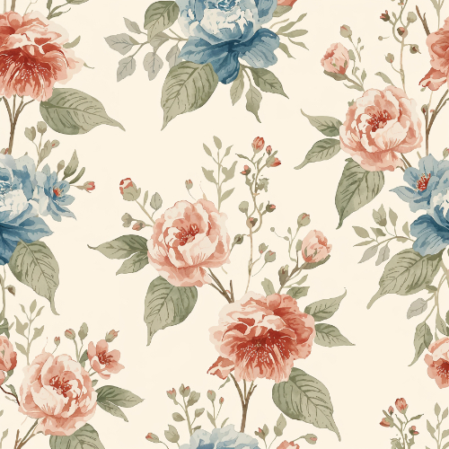 vintage garden rose pattern, peach blue floral repeat, botanical rose seamless design, romantic rose textile pattern, cottage garden flower repeat, decorative rose blossom pattern, pastel botanical flower design, classic floral surface pattern, elegant rose garden print, botanical rose floral repeat