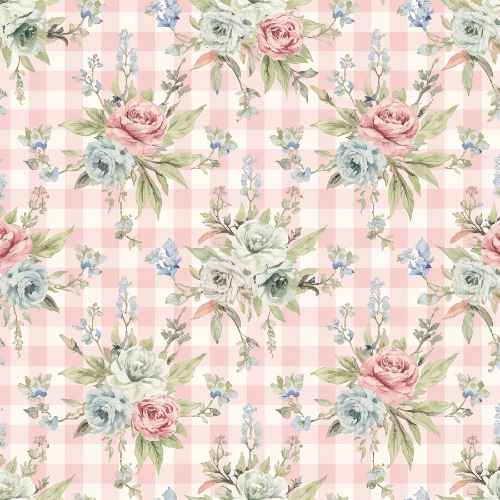 rose gingham pattern, vintage floral bouquet repeat, pink check floral seamless design, cottage rose textile pattern, romantic floral gingham print, shabby chic rose pattern, decorative rose bouquet repeat, vintage garden floral pattern, pastel rose surface design, gingham floral seamless pattern